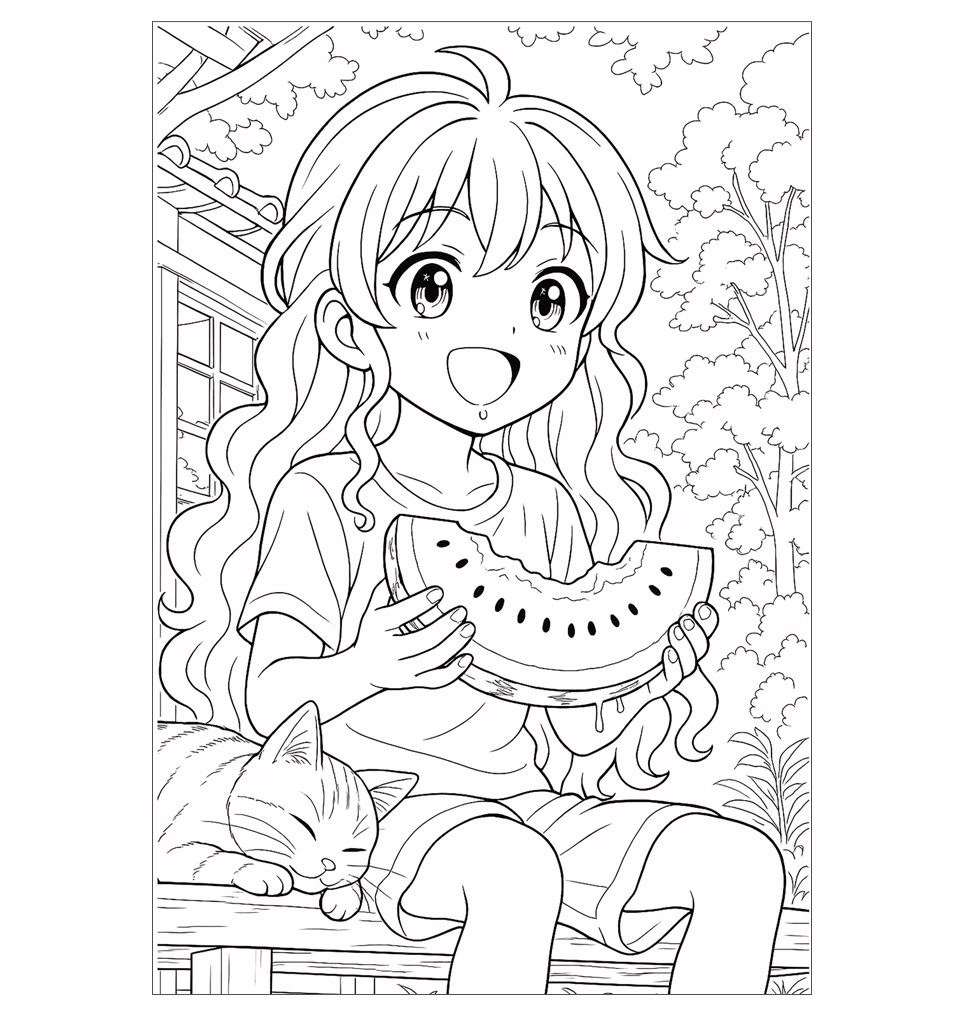 En målarbok anime i A4-format med 50 illustrationer, där varje motiv har en tom baksida för bästa färgläggningsupplevelse. Perfekt för avkoppling, kreativt uttryck och som en uppskattad present.